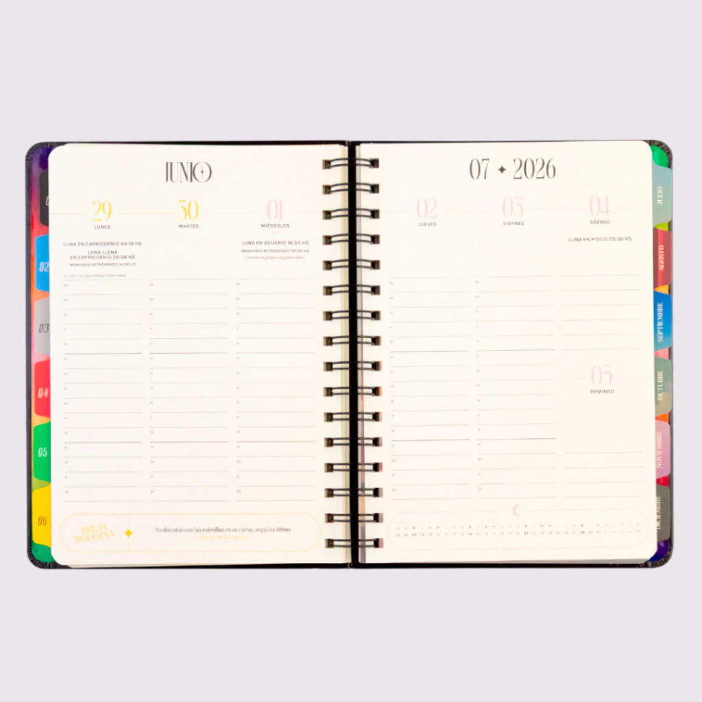 Descubrí la AGENDA 2026 MONOBLOCK BRUJA MODERNA - ASTROS, tu compañera ideal para organizar cada semana con estilo y mística. Con un práctico formato semanal de 22x16 cm, combina funcionalidad y diseño único inspirado en los astros y la magia moderna. Perfecta para planificar tus días y conectar con tu energía interior. ¡Organizate con encanto y poder durante todo el 2026!