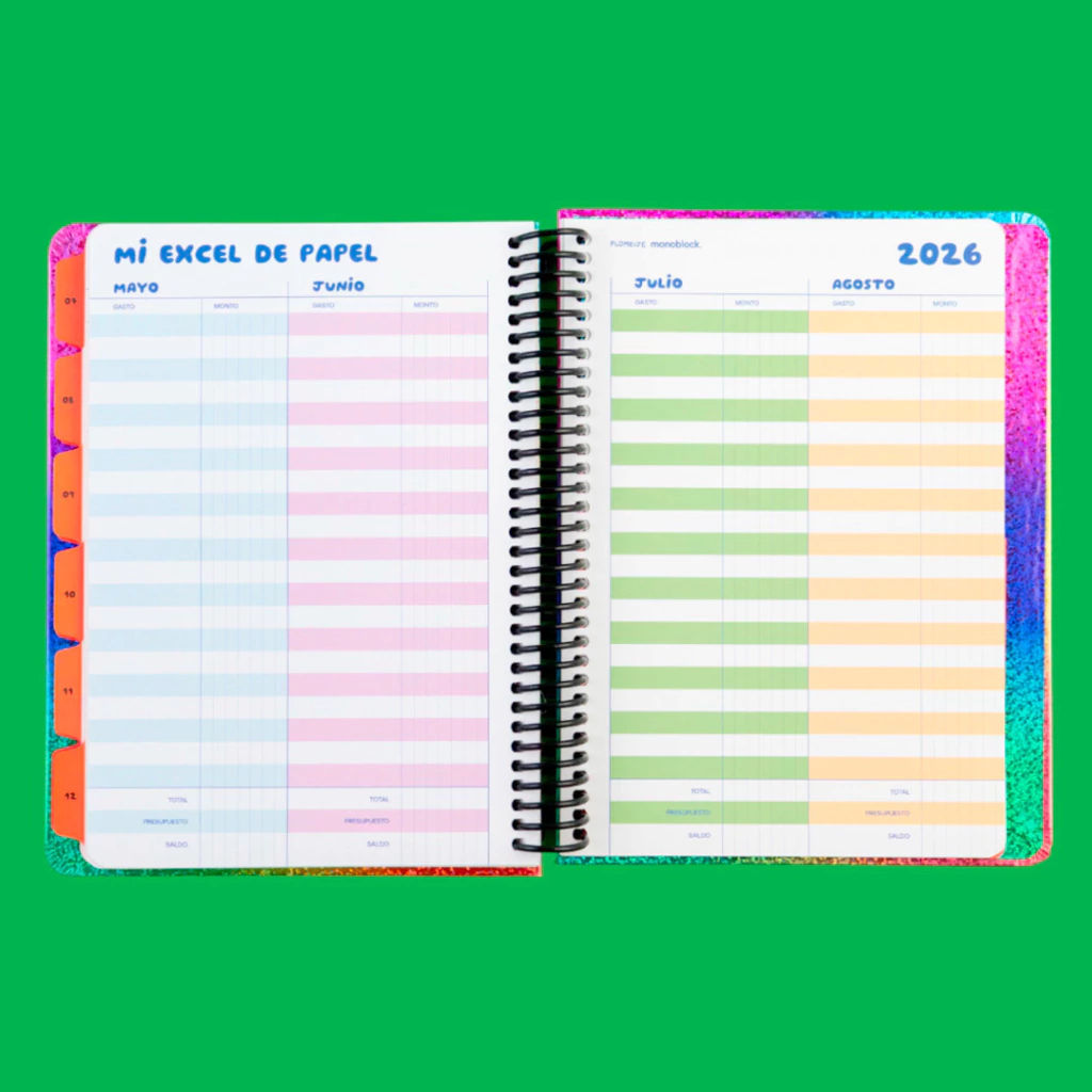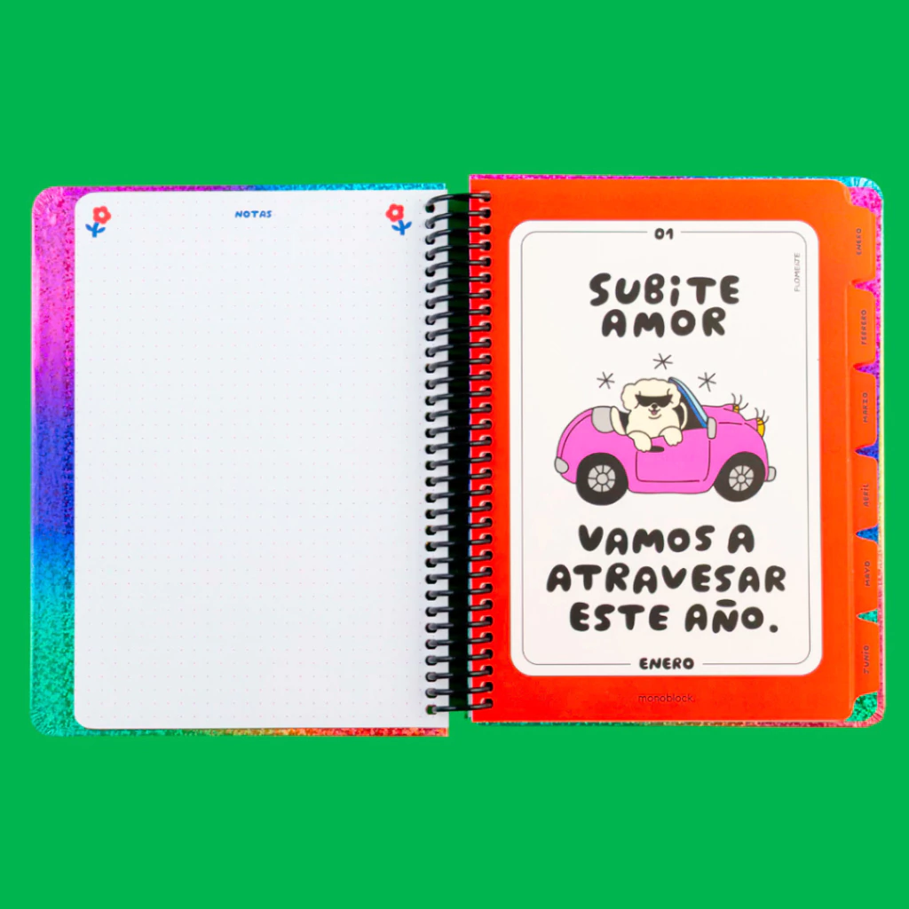 Con un tamaño cómodo de 22x16 cm, esta agenda es perfecta para quienes buscan combinar funcionalidad y estética. Cada página está pensada para que planifiques tus días de manera eficiente, sin perder detalle. Además, su encuadernación monoblock asegura durabilidad y facilidad para escribir.
