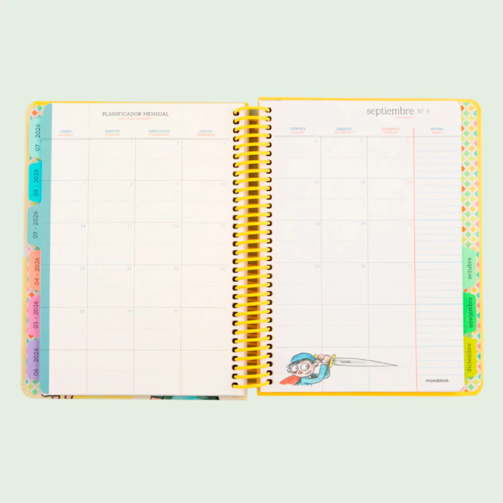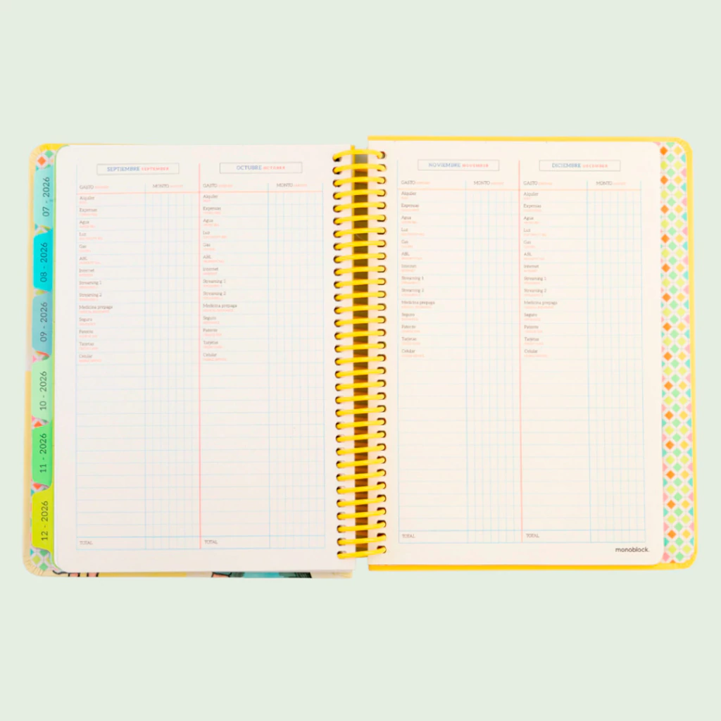 Con un tamaño cómodo de 22x16 cm, esta agenda es perfecta para quienes buscan combinar funcionalidad y estética. Cada página está pensada para que planifiques tus días de manera eficiente, sin perder detalle. Además, su encuadernación monoblock asegura durabilidad y facilidad para escribir.