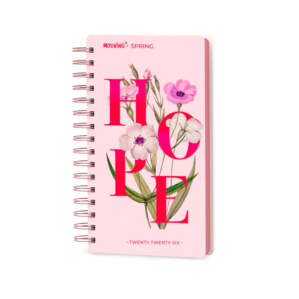 Descubrí la Agenda 2026 Mooving - Spring Hope - Semanal Pocket, tu compañera perfecta para organizar cada semana con estilo y practicidad. Su diseño compacto pocket es ideal para llevar a todos lados, mientras que su formato semanal te ayuda a planificar tus días de manera clara y eficiente. Con un toque fresco y esperanzador, esta agenda te inspirará a cumplir tus metas durante todo el año. ¡Planificá con Mooving y viví un 2026 lleno de oportunidades!