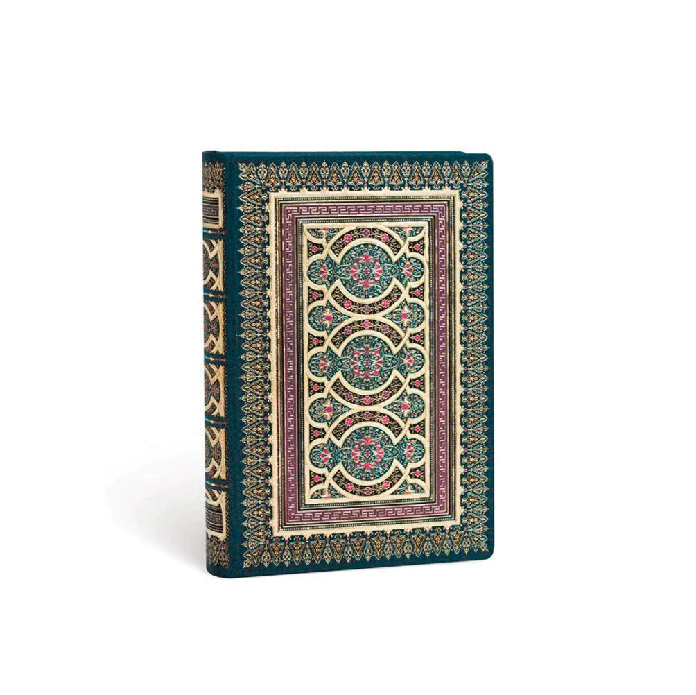 El ejemplar original de 1910 de esta suntuosa encuadernación custodiaba una de las historias más antiguas y románticas jamás escritas: Dafnis y Cloe de Longo, novelista griego del siglo II. El diseño en tonos morados de nuestro diario Cloe representa la sabiduría, dignidad y misterio de este personaje.
