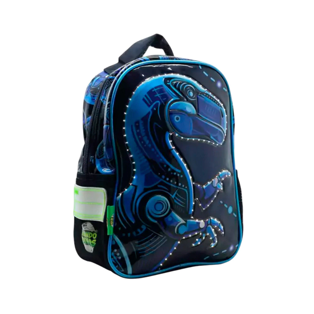 MOCHILA CRESKO - MUNDO DINO ROBOTICO CON LUCES - ESPALDA 12"