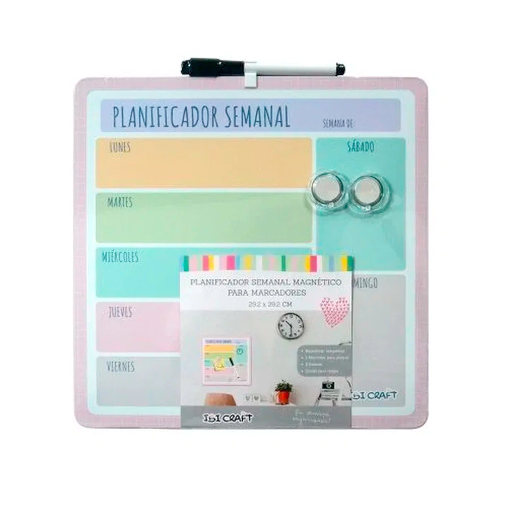 ¡Planifica tu semana de manera efectiva con la Pizarra Planificador Ibicraft Magnética Semanal! Con un tamaño compacto de 29,2 x 29,2 cm, esta pizarra es ideal para organizar tus actividades diarias.